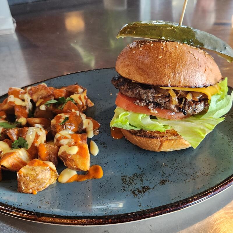 This was our first time coming to Solterra for dinner. We sat at the bar, unbeknownst that it was happy hour. My sister got a glass of their Pinot Noir with a Lamb Burger and I got a glass of the Rose with Seafood Paella. Everything was delicious!
